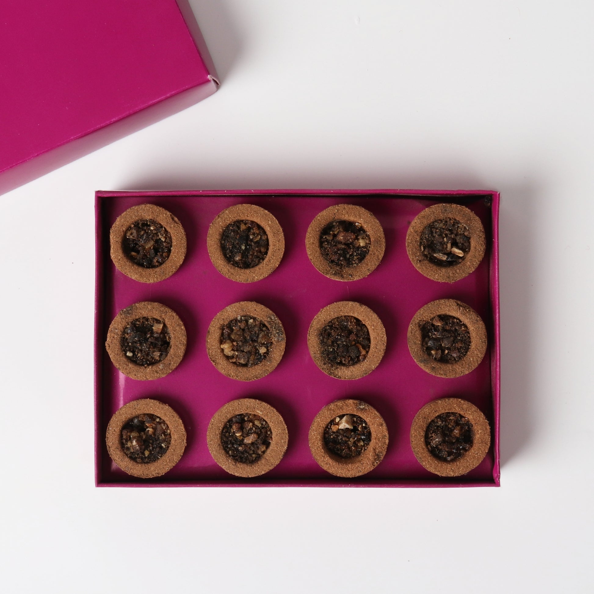 Sambrani Havan Cups: Made from a mixture of sacred herbs, cow dung, and wood (yagya ingredients), these incense cups will fill your home with the aroma of yagya every day.